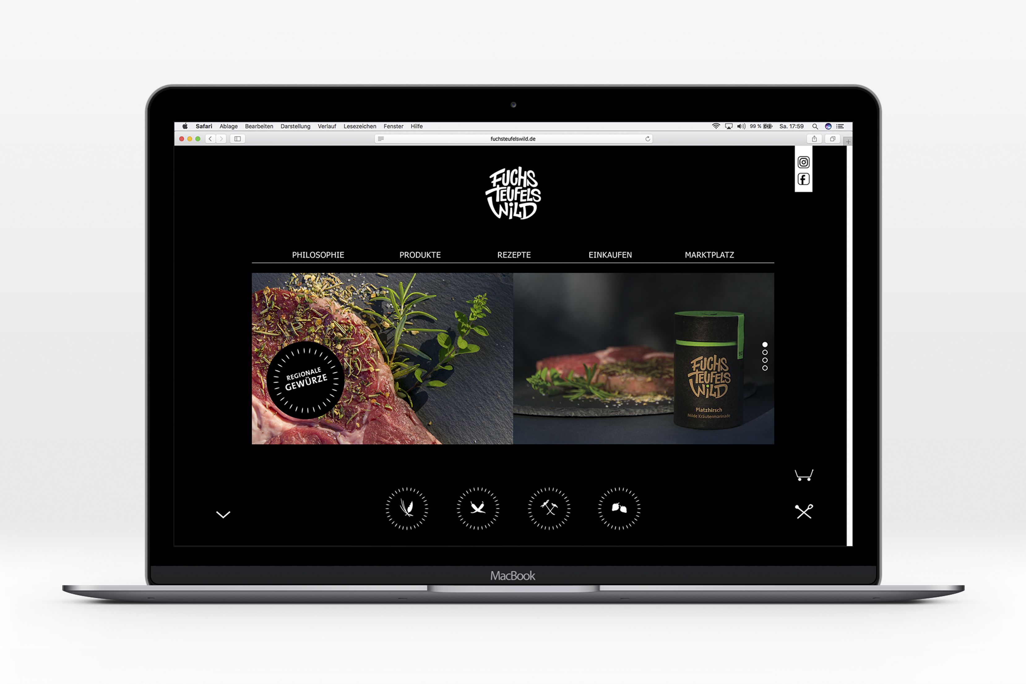 Screendesign Landingpage | Start-Screen zum Scrollen mit Slider, Sticky Navigation und Verlinkungen zur social media Präsenz
