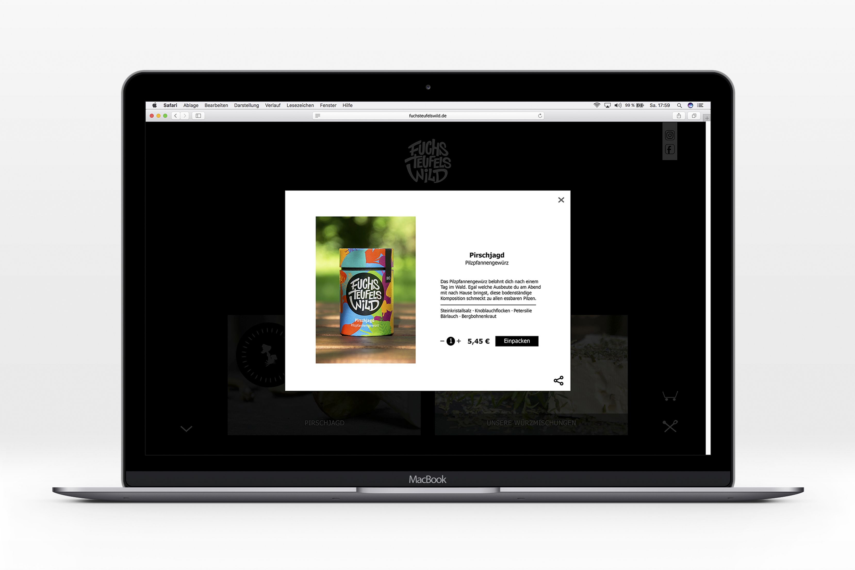 Screendesign Landingpage | Einzelne Produkte öffnen sich als Pop-Up mit Share-Button